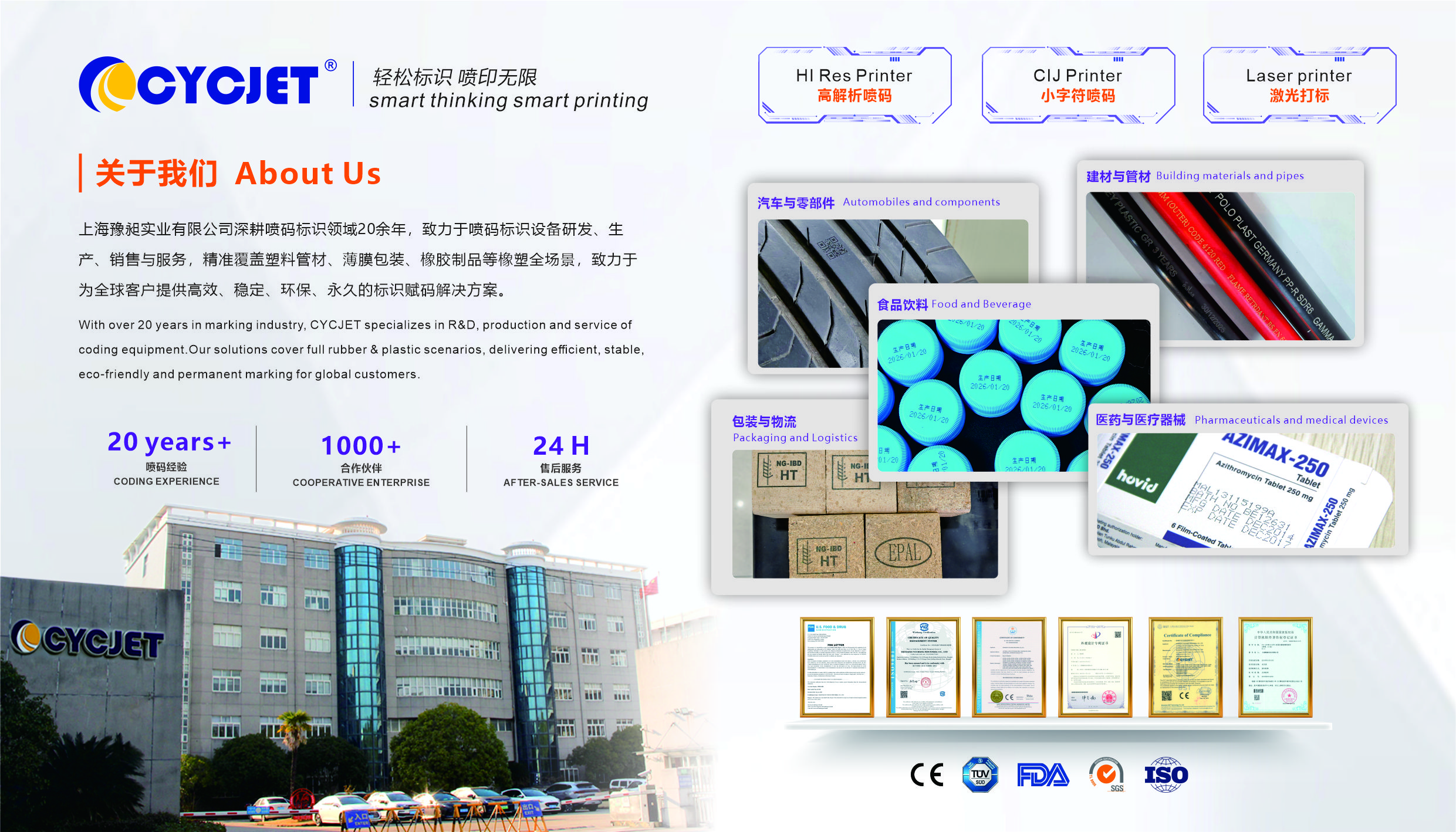 The company offers a full product portfolio: laser marking equipment, high-speed digital printing systems, CIJ inkjet printer, automated identification solutions and portable handheld inkjet printer, meeting diverse material and scenario requirements.