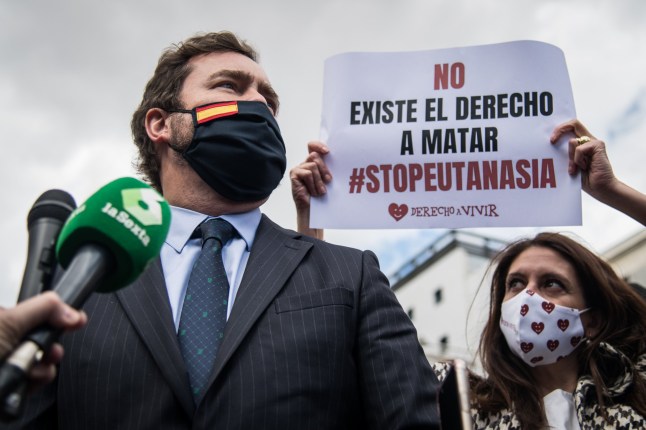 A demonstration against the euthanasia law in front of the Congress of Deputies in Madrid,Spain (Picture: Joan Amengual/VIEWpress)