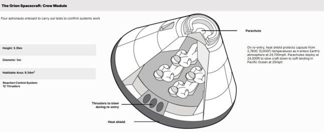 The Orion capsule,where the crew are staying for their lunar holiday (Picture: Metro)
