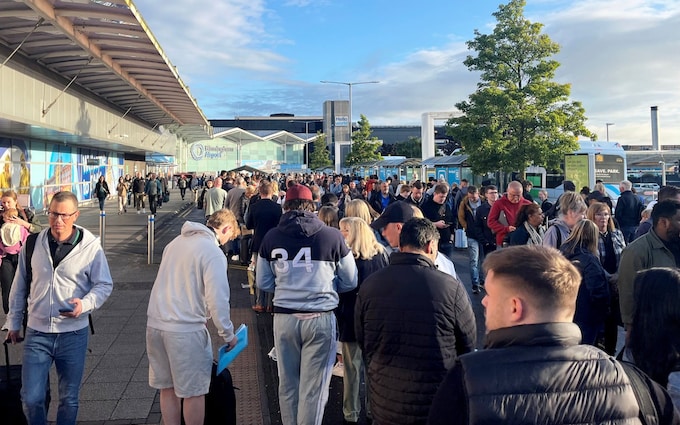 Passengers at Birmingham Airport say they faced “carnage” in the early hours of Friday morning,with multiple lanes of queues forming just to get into the building.