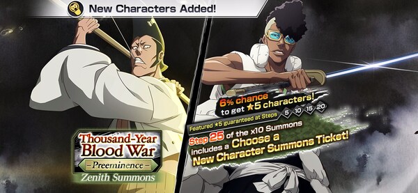 Oh-Etsu Nimaiya and Tenjiro Kirinji will be Available as New Characters in the Thousand-Year Blood War Zenith Summons: Preeminence