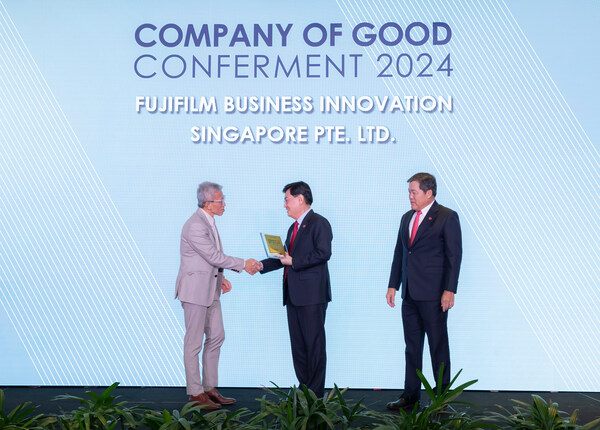 SINGAPORE,Sept. 4,2024 -- FUJIFILM Business Innovation Singapore is delighted to be recognised as a "Champion of Good",the highest accolade conferred by the National Volunteer & Philanthropy Centre (NVPC) under the Company of Good program. This prestigious distinction,which lasts for three years,acknowledges the company's unwavering commitment to creating a positive impact across five key areas in People,Society,Governance,Environment and Economic.