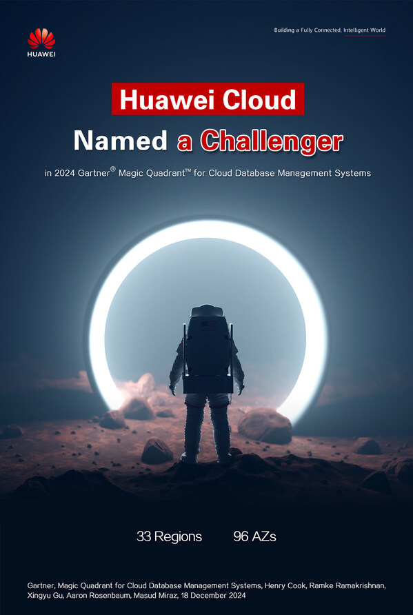 SHENZHEN,China,Dec. 27,2024 -- Huawei Cloud was named a Challenger in theMagic Quadrant for Cloud Database Management Systems,2024 report released recently by Gartner,a renowned international research institute.