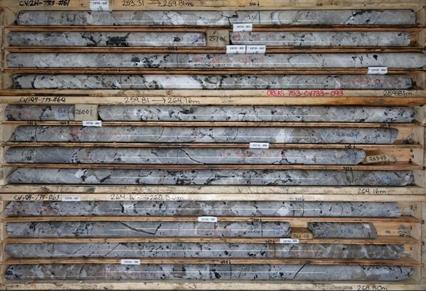 100.5 m at 1.06% Li2O,including 15.0 m at 2.25% Li2O (CV24-730).