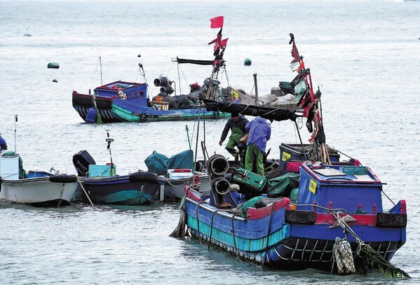 Along the shoreline,59-year-old fisherman Shen Zhiqun was busy unloading fresh catches with his son,after nights spent navigating the shimmering expanse of the sea.