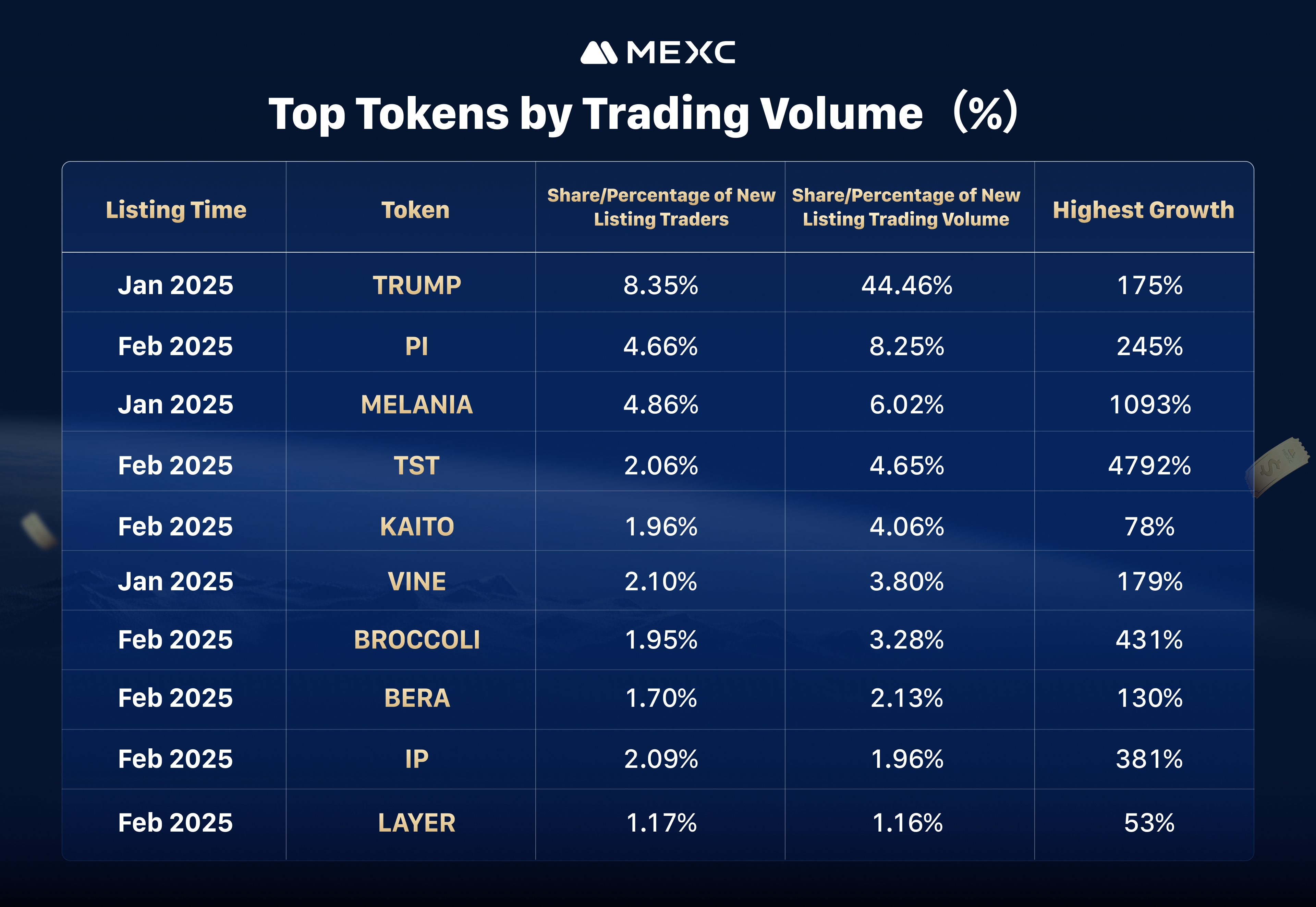 MEXC’s latest data highlights the continued demand for trendy tokens and social trends, with meme coins driving trading activity. The dominance of meme coins in listings and their record-breaking price surges highlight MEXC’s position as a leading exchange for discovering and trading early digital assets. As the exchange remains committed to supporting innovations and trends, its deep liquidity and diverse listings offer traders unique opportunities in the fast-moving digital asset space.