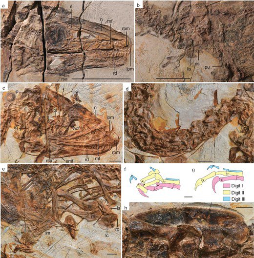 Details of the two dinsaurs. a) and b) show sinosauropteryx lingyuanensis while the other images show Huadanosaurus sinensis (Picture: National Science Review)