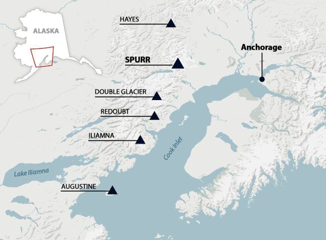 Mount Spurr is around 80 miles from the state capital,Anchorage (Picture: Metro)