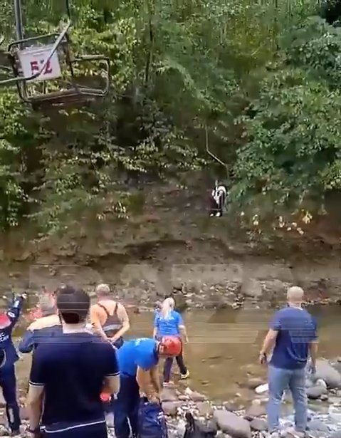 This is the moment a chairlift collapsed in a Russian resort sending four people plunging into a lake and six others hitting the ground.